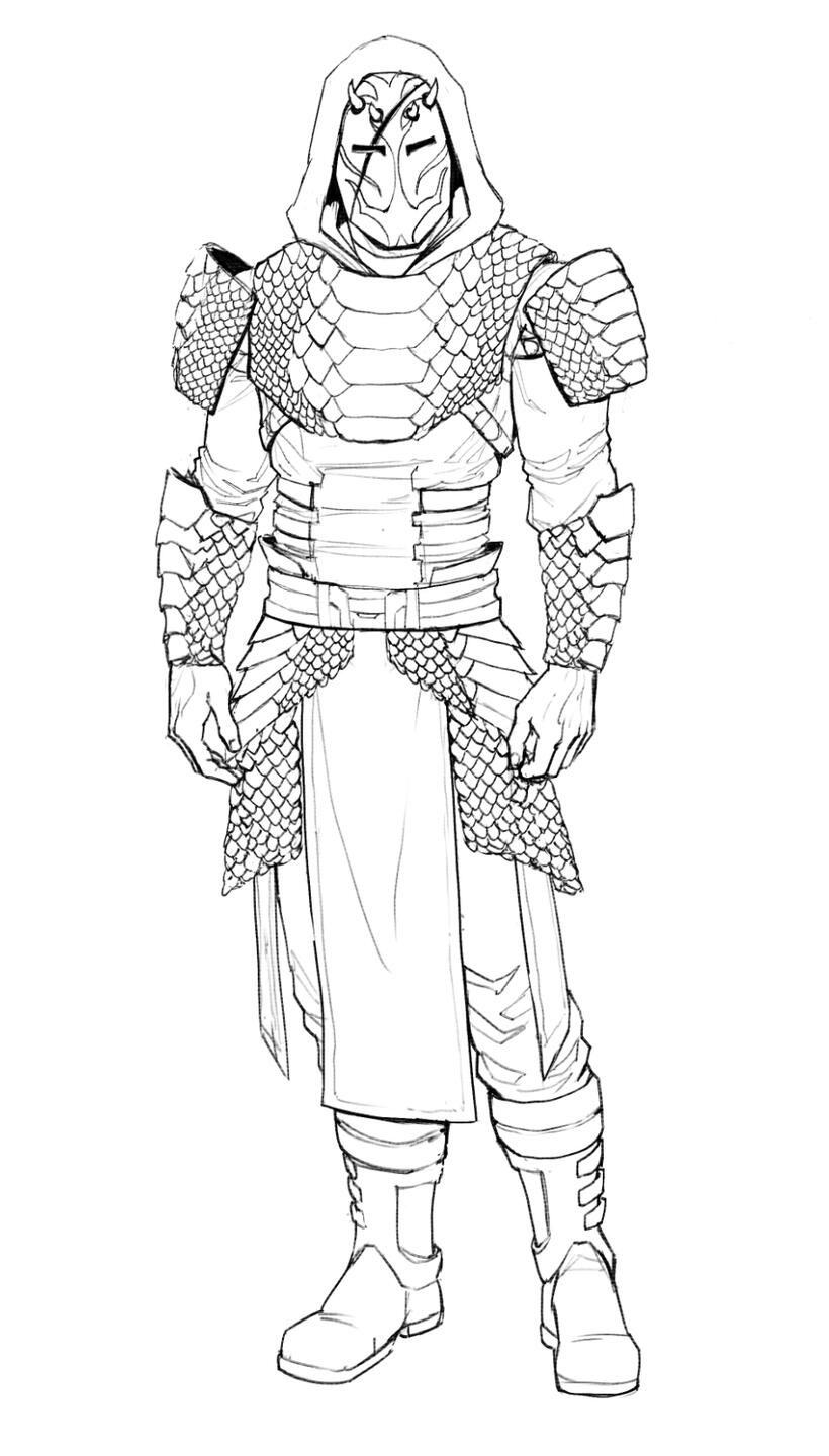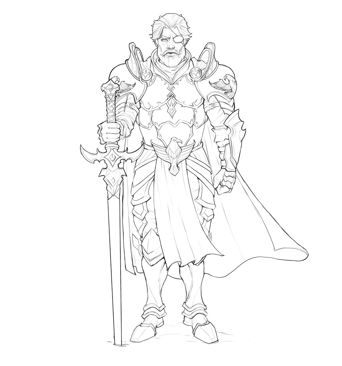 A drawing of your character (portrait, half-body, full-body) with lines, no color. Base price includes portrait and half-body.